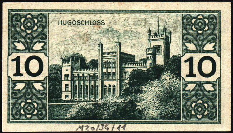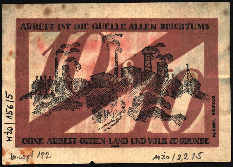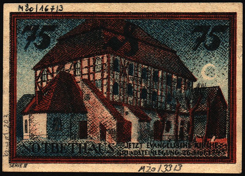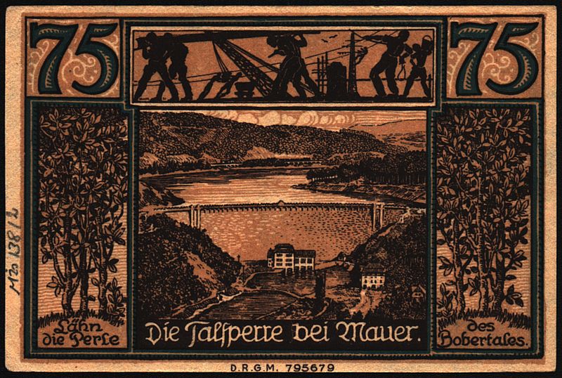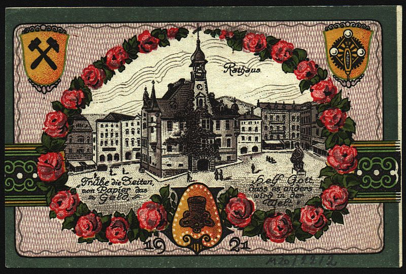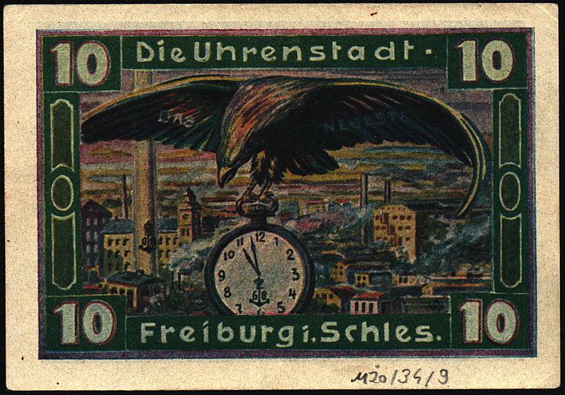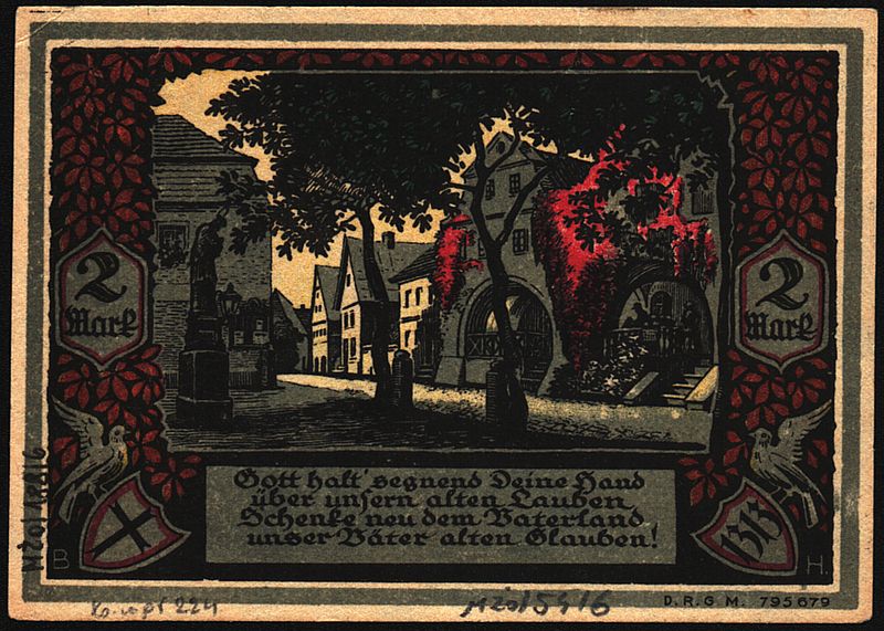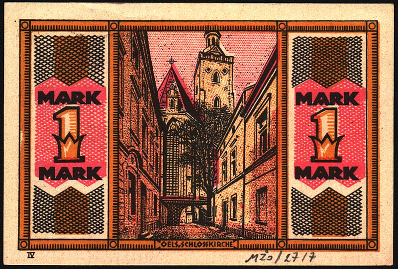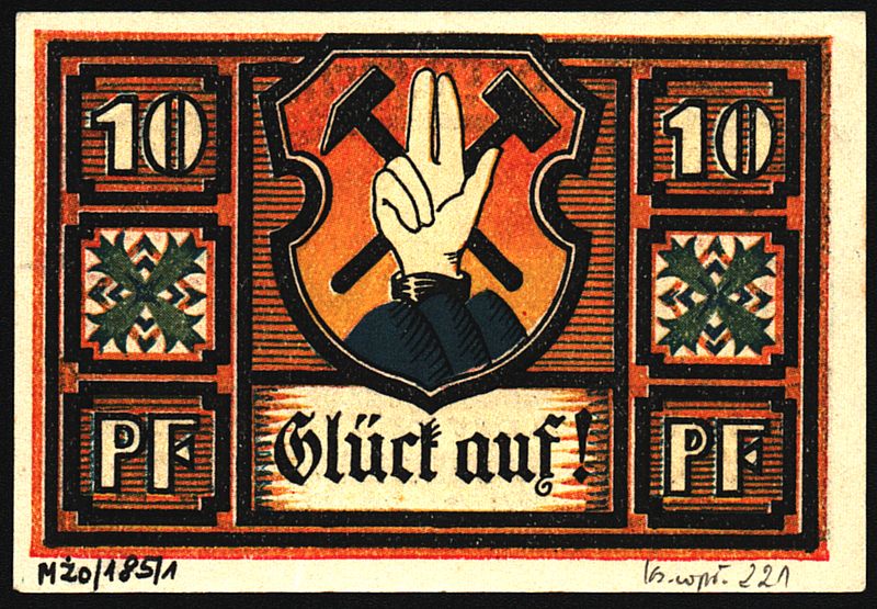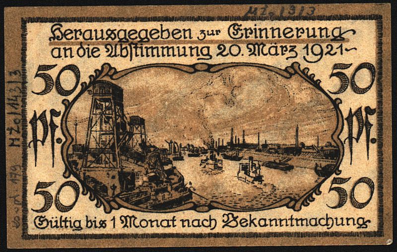 Banknot zastępczy o nominale 2 marek wydany 1.03.1922 r. przez gminę Kończyce (powiat Zabrski) na pamiątkę ustalenia granicy polsko-niemieckiej. Ważny do 1.10.1923 roku.