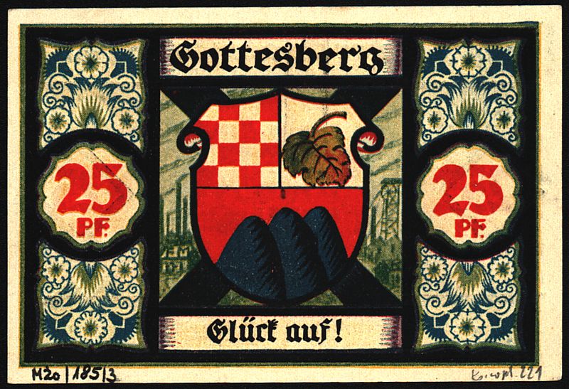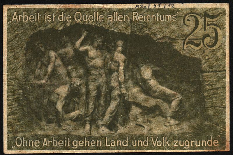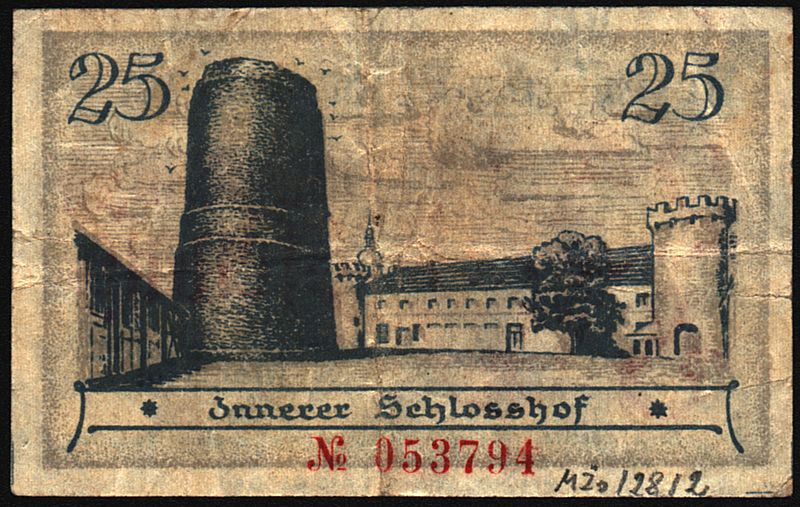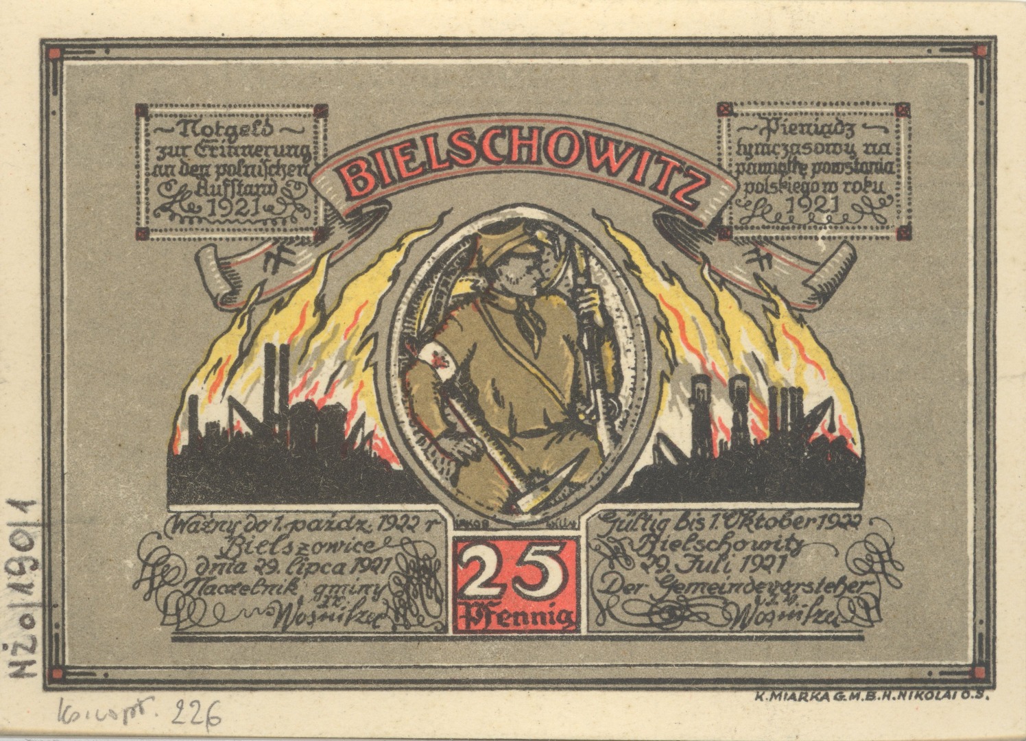 Banknot zastępczy o nominale 25 fenigów wydany dla gminy Bielszowice