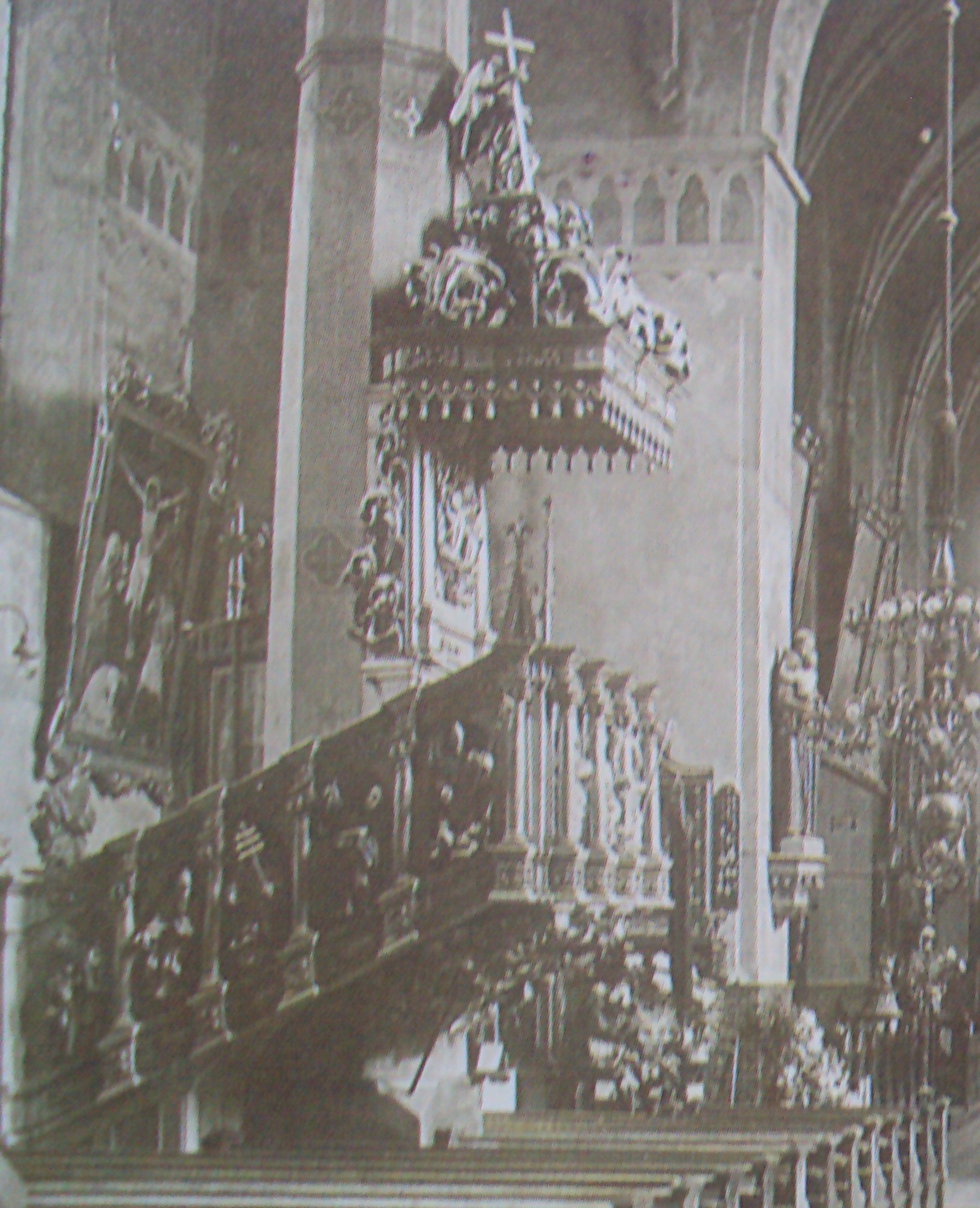 W tyle kościoła znajduje się chór z organami oraz czterokondygnacyjna 54 metrowa wieża.