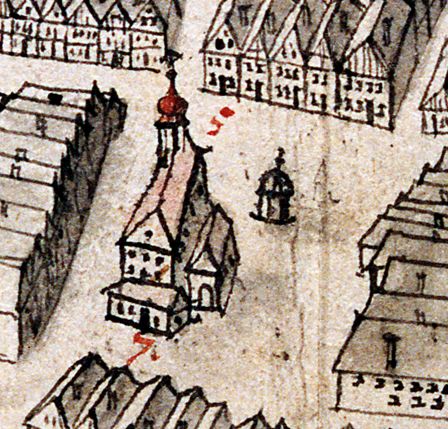 Według opisu wieży z 1750, pod sklepieniem wieżowym znajdowało się archiwum miejskie (wózek obity żelazem, w czasie pożaru wyciągany na środek rynku). Ratusz ten spłonął w czasie pożaru w 1807 roku.